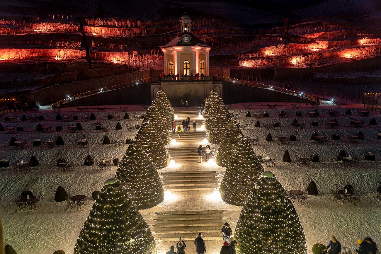 In der Adventszeit stehen Park, Schloss und Weinberge für all diese Eigenschaften im Flair der festlichen Stimmung. In den Wochen vor und nach Weihnachten finden zahlreiche Events auf Schloss Wackerbarth statt und dazu gehört der Manufakturzauber auf Schloss Wackerbarth.