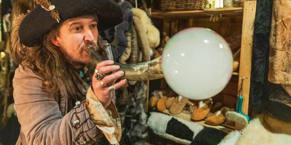 Hier trifft man auf Gaukler, Büttel und Handwerker. Hölzerne Marktstände, Fackeln und Kerzen, kaum noch ausgeübte Handwerkskünste, feine Gewänder und Musici – eine einmalige Atmosphäre, die Jahr für Jahr tausende Besucher begeistert. Lieder des Mittelalters werden vorgetragen, Gaukelei und Schabernack unterhalten das Publikum, Händler bieten an geschmückten Ständen ihre Waren feil.
