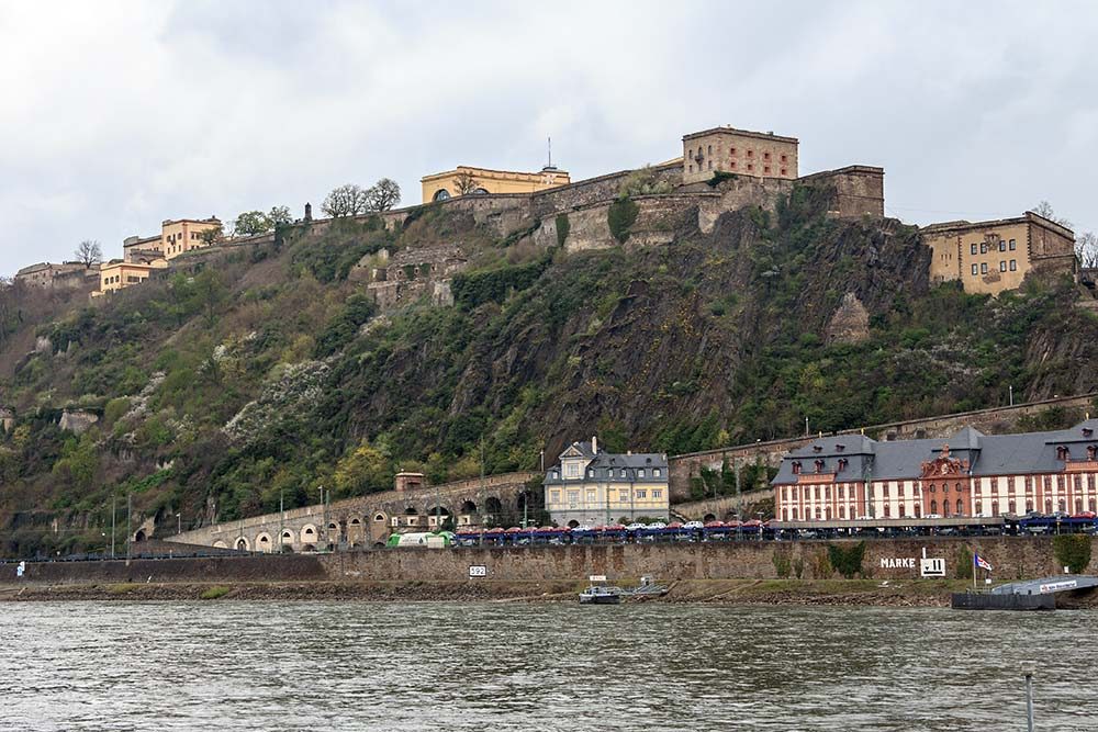 Dort wo die Mosel in den Rhein mündet und das deutsche Eck an Kaiser Wilhelm erinnert, befindet sich auf der Anhöhe über dem Fluss die Festung Ehrenbreitstein als dominantes Wahrzeichen von Koblenz. Sie war Teil der preußischen Verteidigungs- und Befestigungsstrategie der Stadt Koblenz und galt zu ihrer Zeit als uneinnehmbar, was allerdings die Geschichte oft widerlegte.